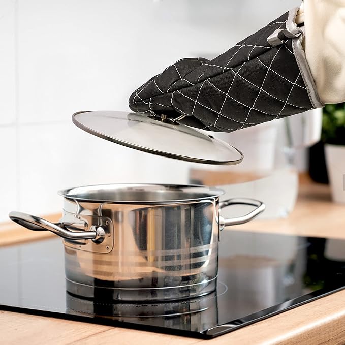 Oven Mitts Flame Retardant Mitts Heat Resistant to 425 °F 15 Inch Kitchen Mitt Black Color 2-Pack