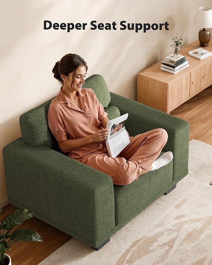 Pipishell Modern Accent Chair, Oversized Armchair with Thick Cushion & Wide Seat Armrests, Reading Chairs Comfy Arm Chair, Removable Sofa Cushion and Cover,Easy to Install, Green